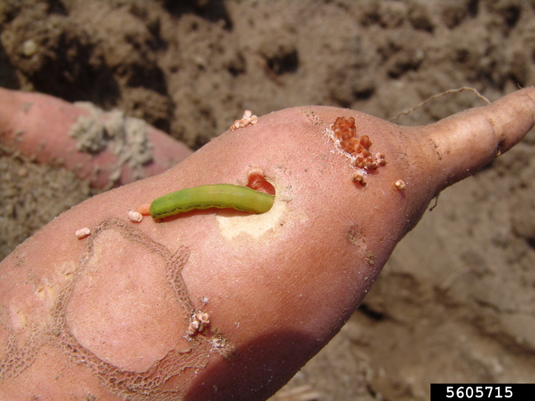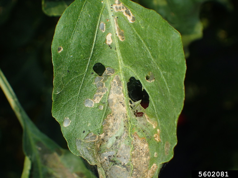 لاروها از برگهای چغندر تغذیه کرده و باعث ایجاد سوراخهای نامنظم میشوند.